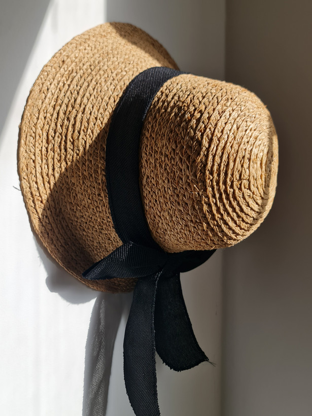 کلاه ساحلی حصیری بافت نچرال با نوار پارچه ایی
